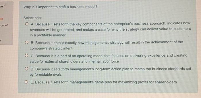 On 1 Why Is It Important To Craft A Business Model Chegg Com