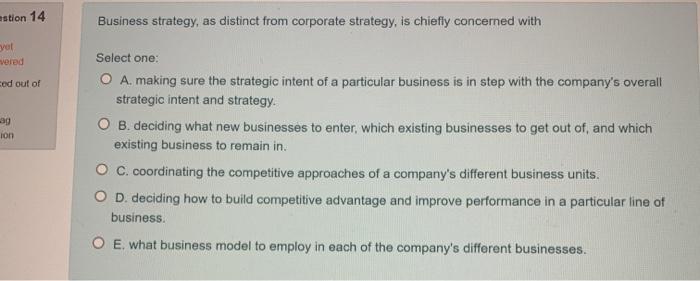 Business strategy as distinct from corporate strategy is chiefly concerned with A. Business strategy as distinct from corporate strategy is chiefly concerned with. Business strategy as distinct from corporate strategy is chiefly concerned with A.